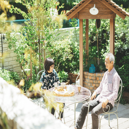 家庭のお庭ですので飾らない自然体が一番。しかしお庭で過ごすシーンには、転がっていても絵になるテーブル椅子があれば嬉しいですね。季節や天気に合わせ移動ができれば、大活躍すること間違いなしです。