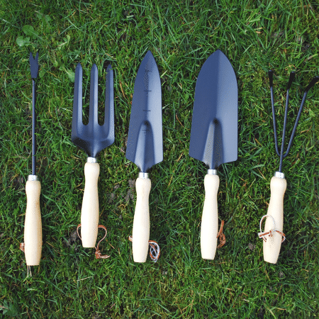他にも、ホー(除草や均し)、レーキ(かき集めや耕し)、草抜き、球根・種の植穴をつくる穴あけ、などなど多種ありますが、大抵の作業はシャベルとフォークで代用可能です。