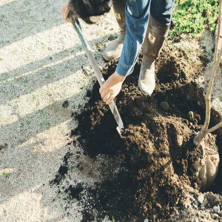 シャベル/とがった先端で地面に刺すような穴掘りが得意。深さの目安になるメモリ付きのものもあり、苗を植える穴を掘ったり、土をすくい運ぶ道具。ステンレスなど丈夫な素材のものが長持ちします。