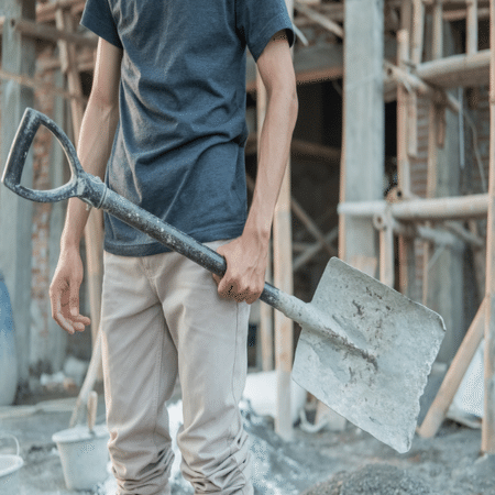 剣先スコップ/とがった先端を地面に当て踏み込み、サクッと切り込むように掘る道具。