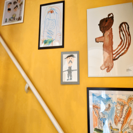 (壁紙の張替の際は表面の仕上がりを美しくするために、パテなどですき間を埋めたり、サンディングをして下地をフラットに調整しますが、アニースローンの壁塗りではそこまで完璧にしなくてもいい、と私たちは思っています。)