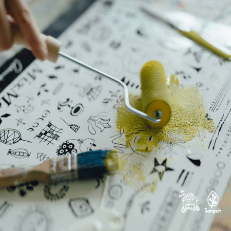 壁紙の上からペイントする良さの一つはゴミを出さないこと。壁紙を剥がすと大量のゴミが出ますし、ほこりも散らかります。それでも、既存の壁紙の汚れがひどい場合や撥水が効いて塗料がのらない場合などは、壁紙を剥がすことも考えます。