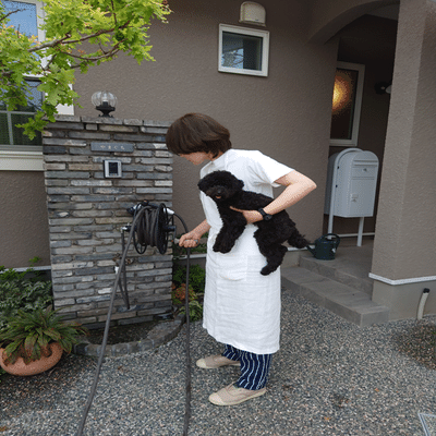 犬との暮らしは思った以上に努力と行動、忍耐力が必要です。しかし家族にとっても大きな変化をもたらしてくれるかけがいのない経験にちがいありません。人種・国籍どころではなく、犬という全く別の動物としてたった一匹でわが家にやってきてくれた、と考えるととてもすごいことです。窓辺に陣取り庭木を眺めている犬の姿は可笑しくもあり、愛おしく感じます。ペットフレンドリーなお庭とは、愛犬やペットが自然の刺激を感じながら育ち、生まれ持った力を発揮できる場所。そして家族と信頼関係を築いていく場であるといいな、と思います。庭仕事をしていると、リラックスした表情で見つめてくるわが家の愛犬。室内でも姉弟たちと賑やかなやり取りを繰り返していますが、なかなかいい関係になりつつあると思っています。まだまだ家族全員に努力も必要ですが、よそでもお庭でも、一緒に遊んだり過ごしたりとたくさんの経験を楽しみたいと思っています。